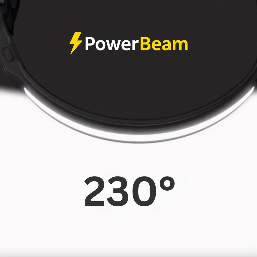 Med fem ljuslägen – hög, medel, låg, stroboskop och spotlight – erbjuder PowerBeam flexibilitet för alla ljusförhållanden, från vida områden till precisa uppgifter.